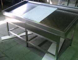 Конструктивно такая холодильная витрина представляет собой прилавок или стол из нержавеющей стали, на котором в специальных подставках размещаются ванны для льда. На чешуйчатый или гранулированный лед, полученный с помощью особых ледогенераторов, в свою очередь, выкладывается рыба или морепродукты. Отсюда и название изделия. Такие прилавки позволяют эффектно представить покупателю широкий ассортимент рыбы и морепродуктов, сохраняя при этом привлекательный товарный вид продуктов и их свежесть. Эффективный теплоизоляционный материал, заложенный в боковые панели открытой холодильной витрины, позволяет улучшить ее экономические характеристики и обеспечивает оптимальный температурный режим.